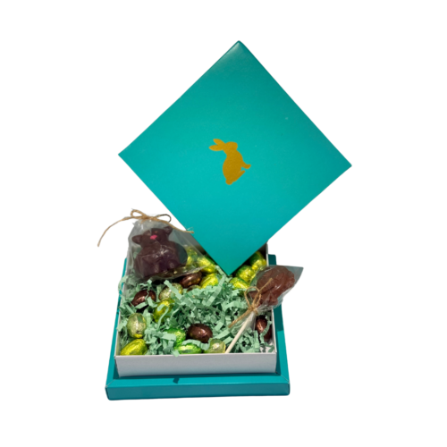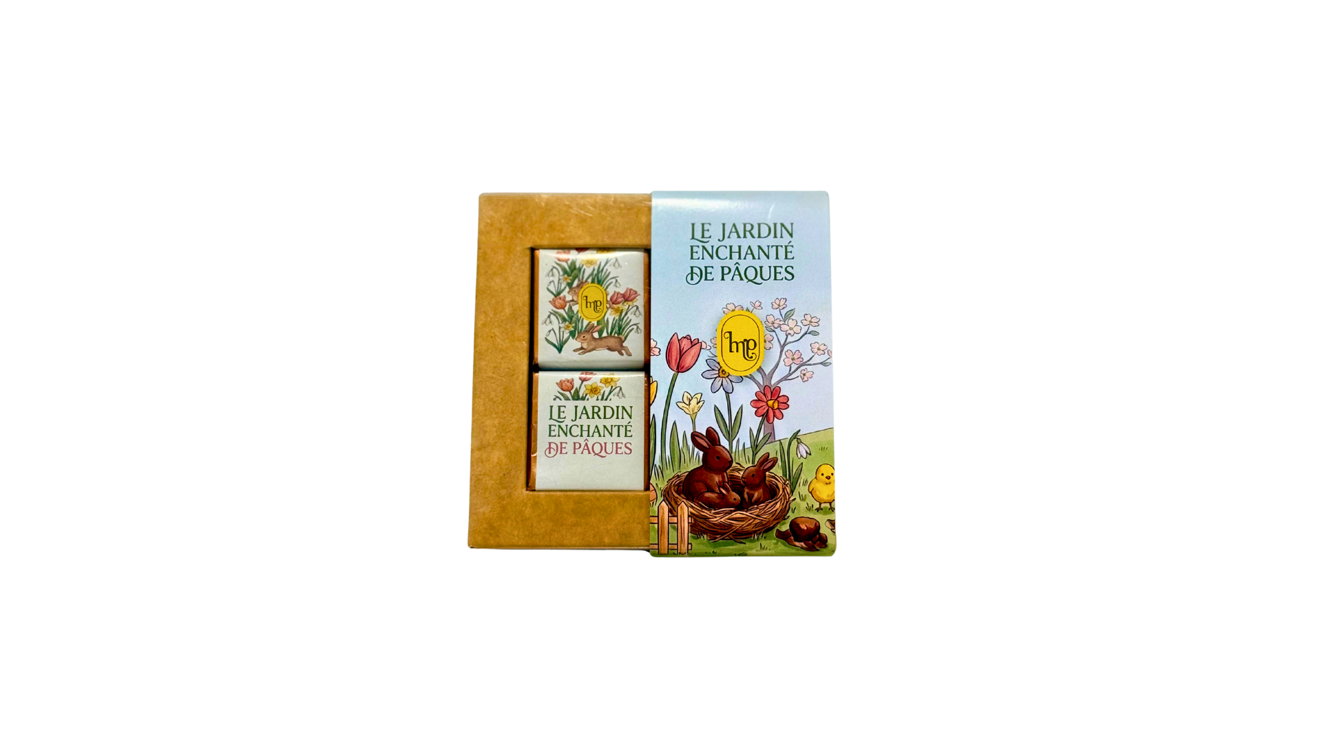 Une élégante boîte contenant deux délicieux chocolats, parfaite pour une petite attention gourmande. Idéale pour offrir à l’occasion de Pâques ou pour se faire plaisir avec une touche sucrée raffinée.