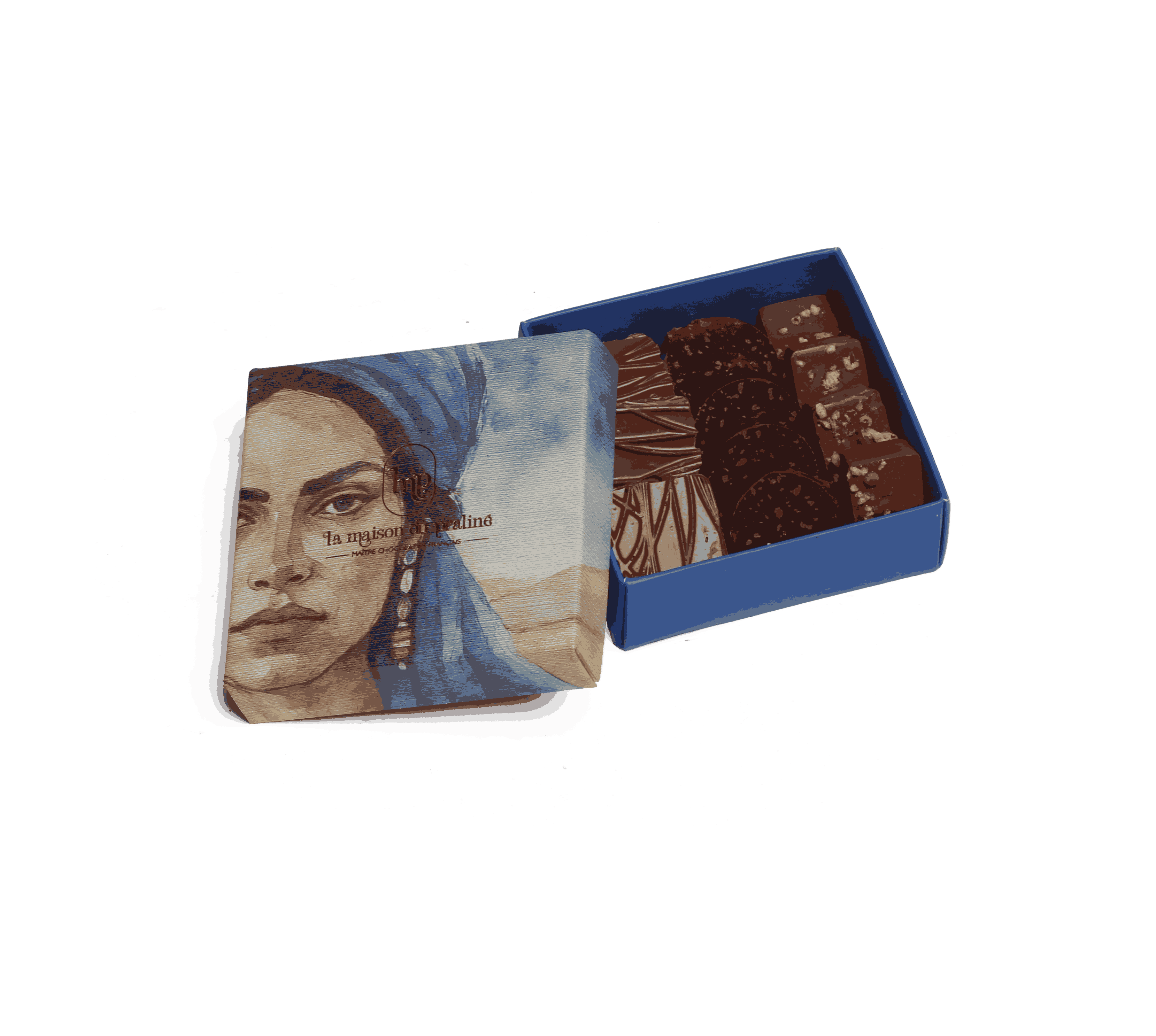 Accueil Idées Cadeaux Boîtes et Ballotins Boîte sahraouia carrée 100 gr