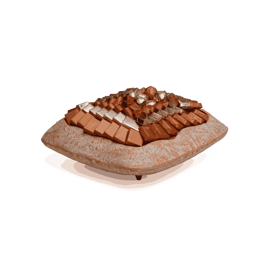 Authentique coupe recouverte de céramique effet pierre.aux teintes naturelles.