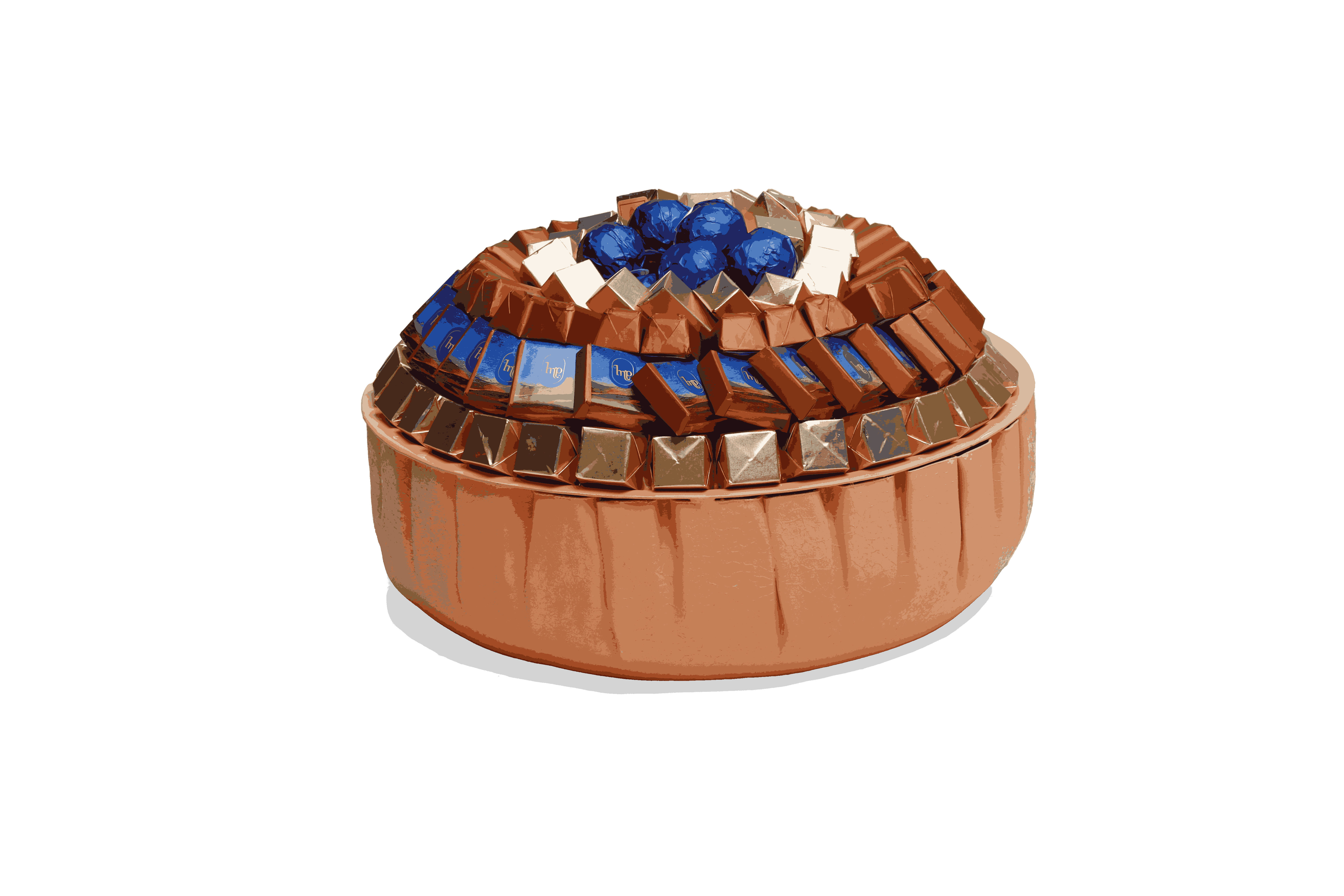 Boîte à chapeaux Gabrielle en cuir avec plateau de chocolats amovible 3kg