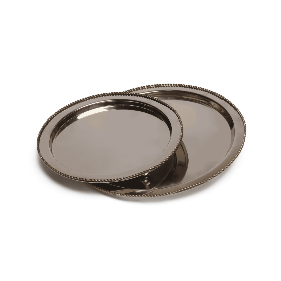 Élégant plateau rond ou ovale sur pieds en argent travaillé