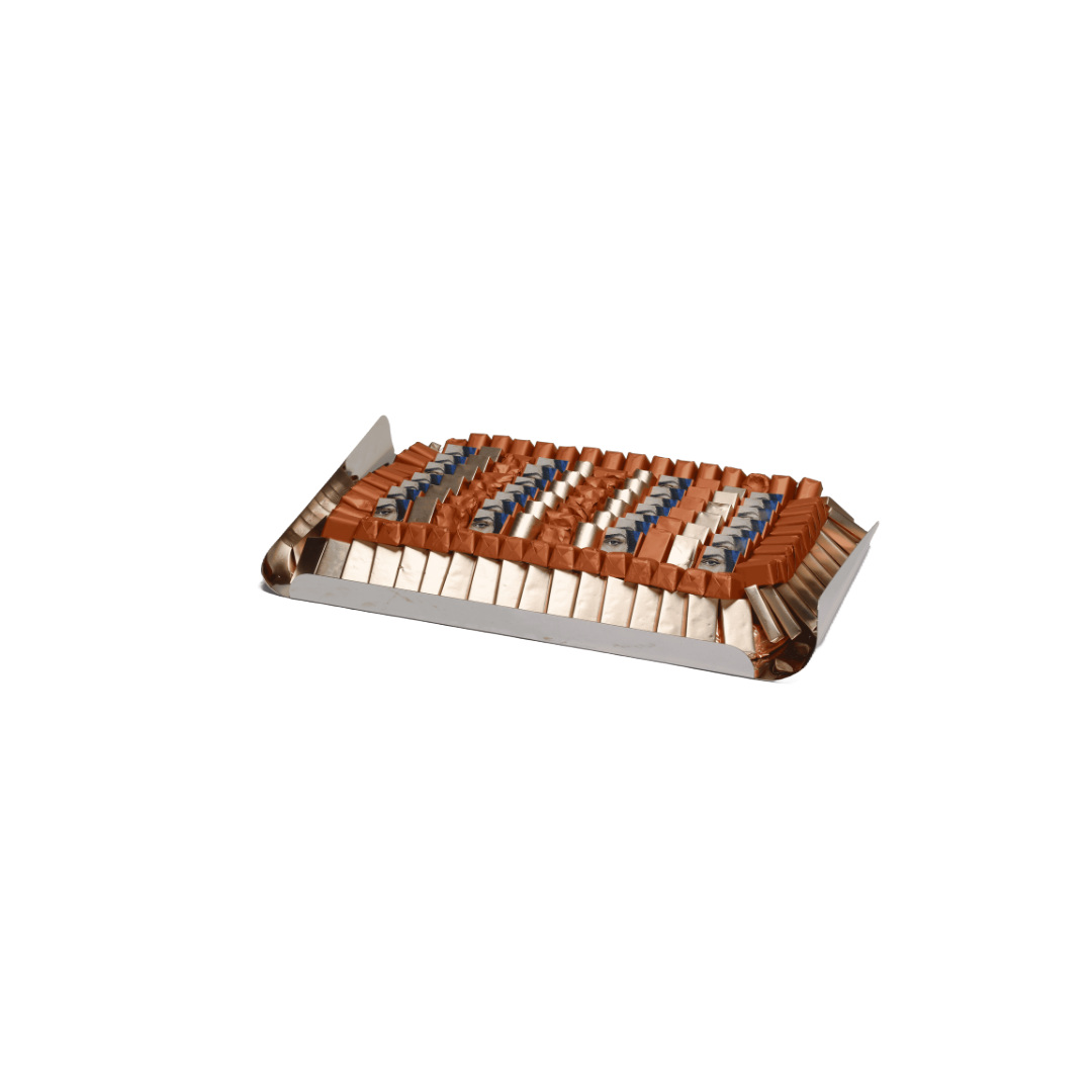 Plateau en inox miroir, idéal pour présenter des assortiments élégants.